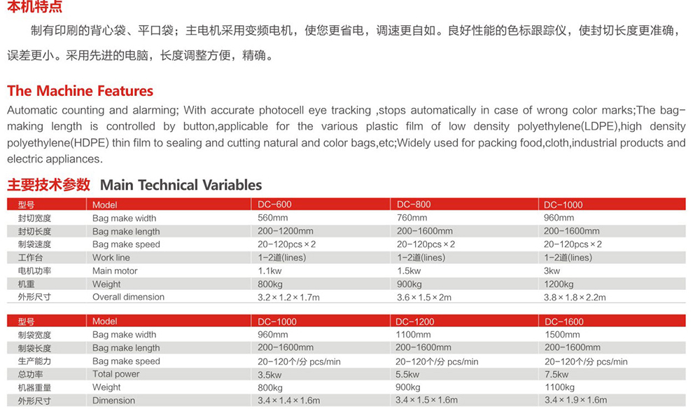 DC-600-1000電腦控制單道、四道熱封冷切制袋機
